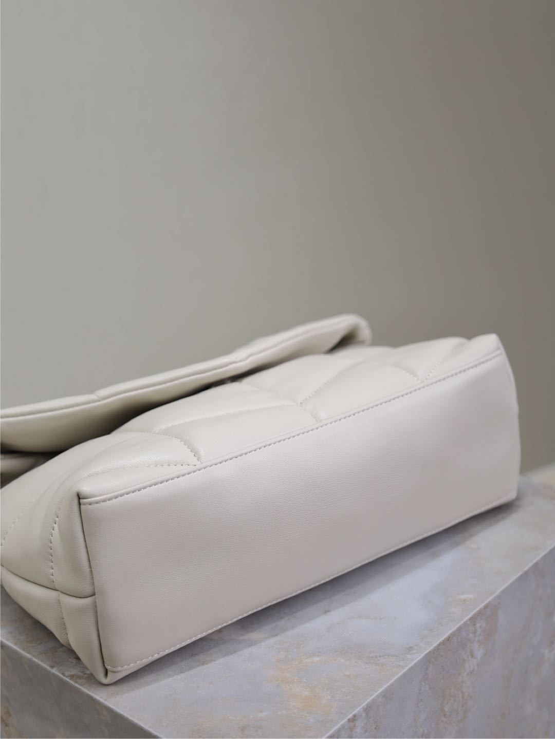 YSL 25S LOULOU PUFFER MM 29 IN SMOKEY TAUPE CALFSKIN SILVER HARDWARE