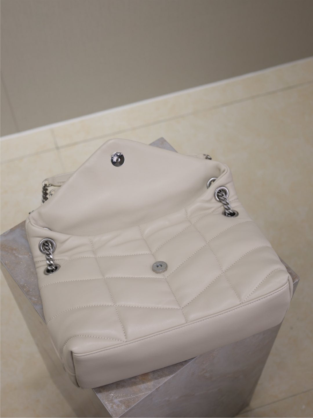 YSL 25S LOULOU PUFFER MM 29 IN SMOKEY TAUPE CALFSKIN SILVER HARDWRE