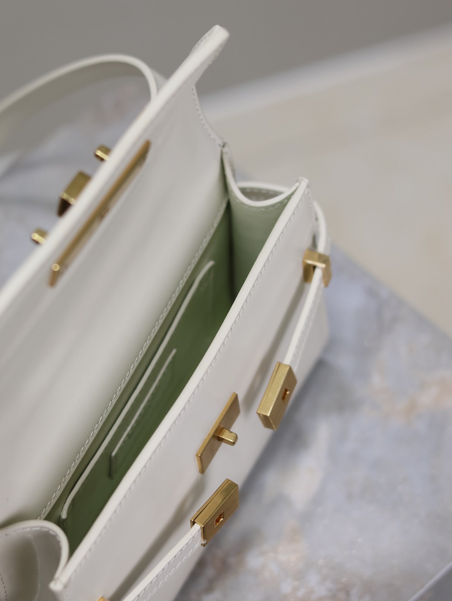 YSL 25S MINI MANHATTAN 19 IN BLANC VINTAGE CALFSKIN GOLD HARDWRE