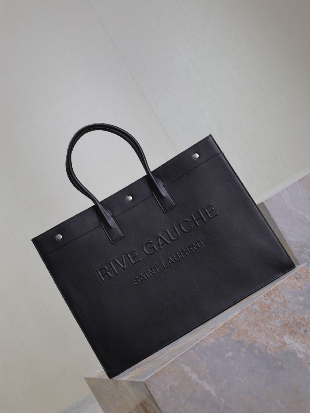 YSL 25S RIVE GAUCHE LARGE TOTE BAG 48 IN BLACK CALFSKIN