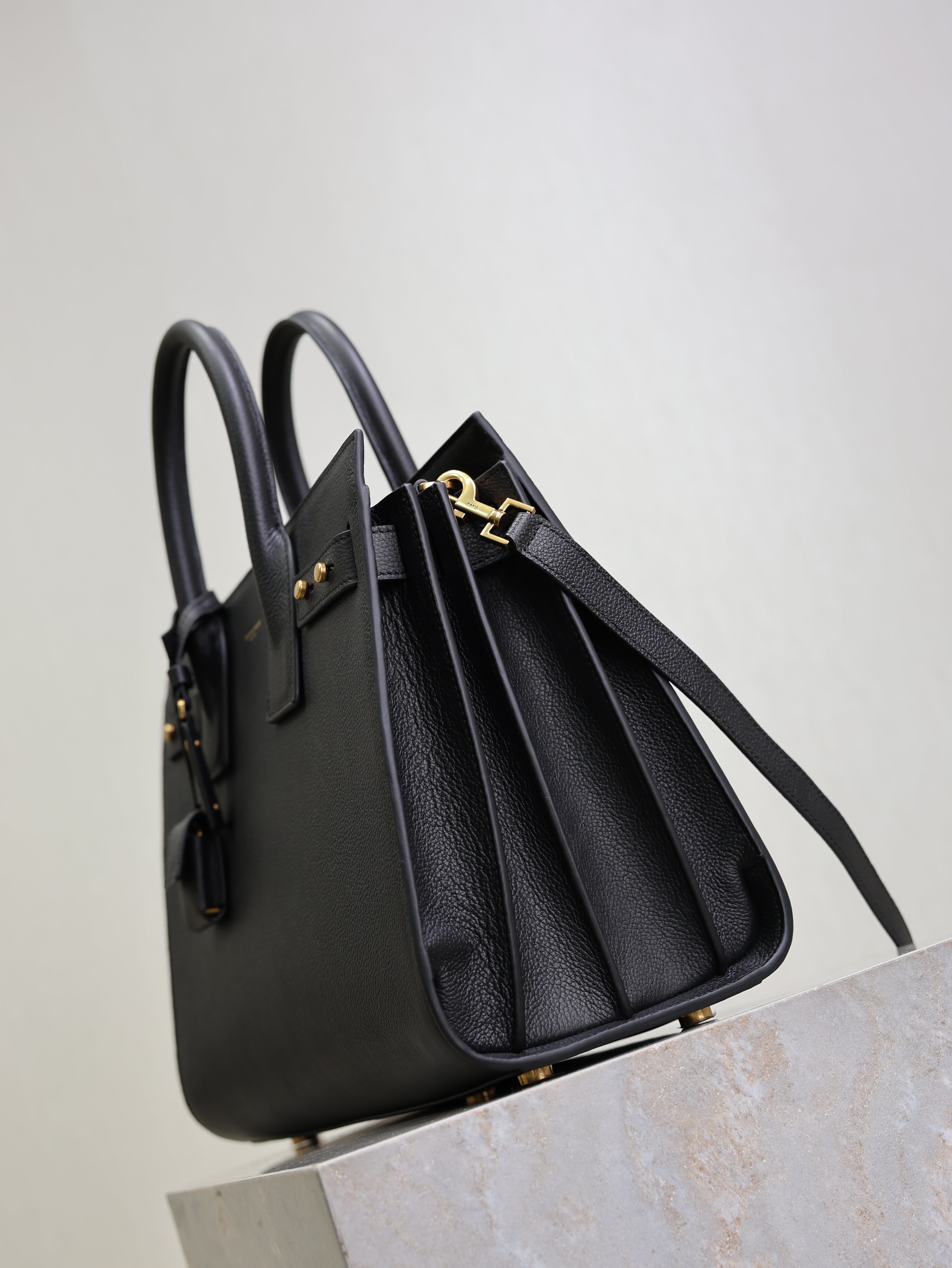 YSL 25S SAC DE JOUR GM 32 IN BLACK SUPPLE GRAINED CALFSKIN GOLD HARDWRE