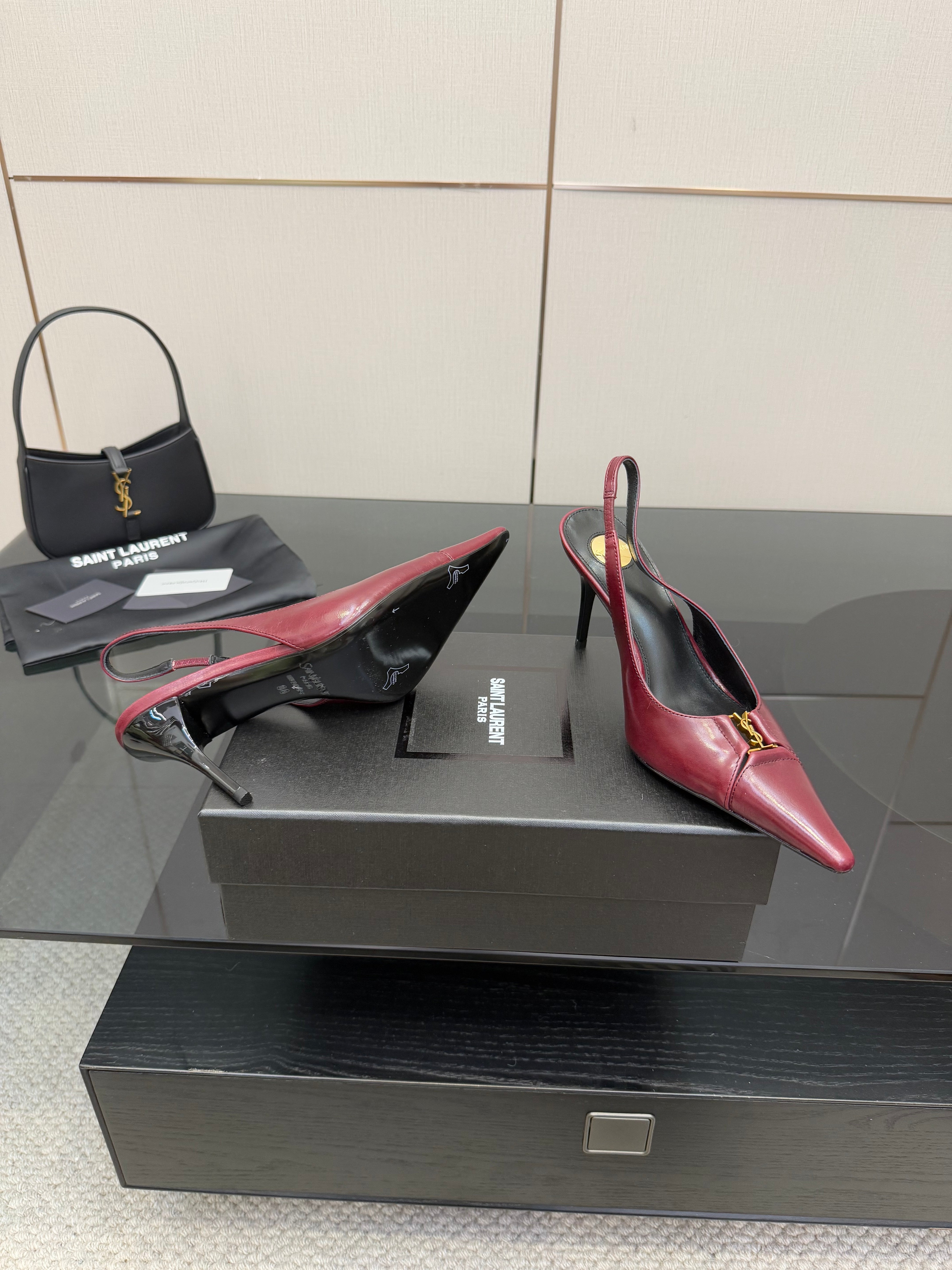 YSL 25S SLINGBACK HIGH HEELS 90 MM IN DARK RED LAMBSKIN WITH GOLD HARDWARE STYLE 9