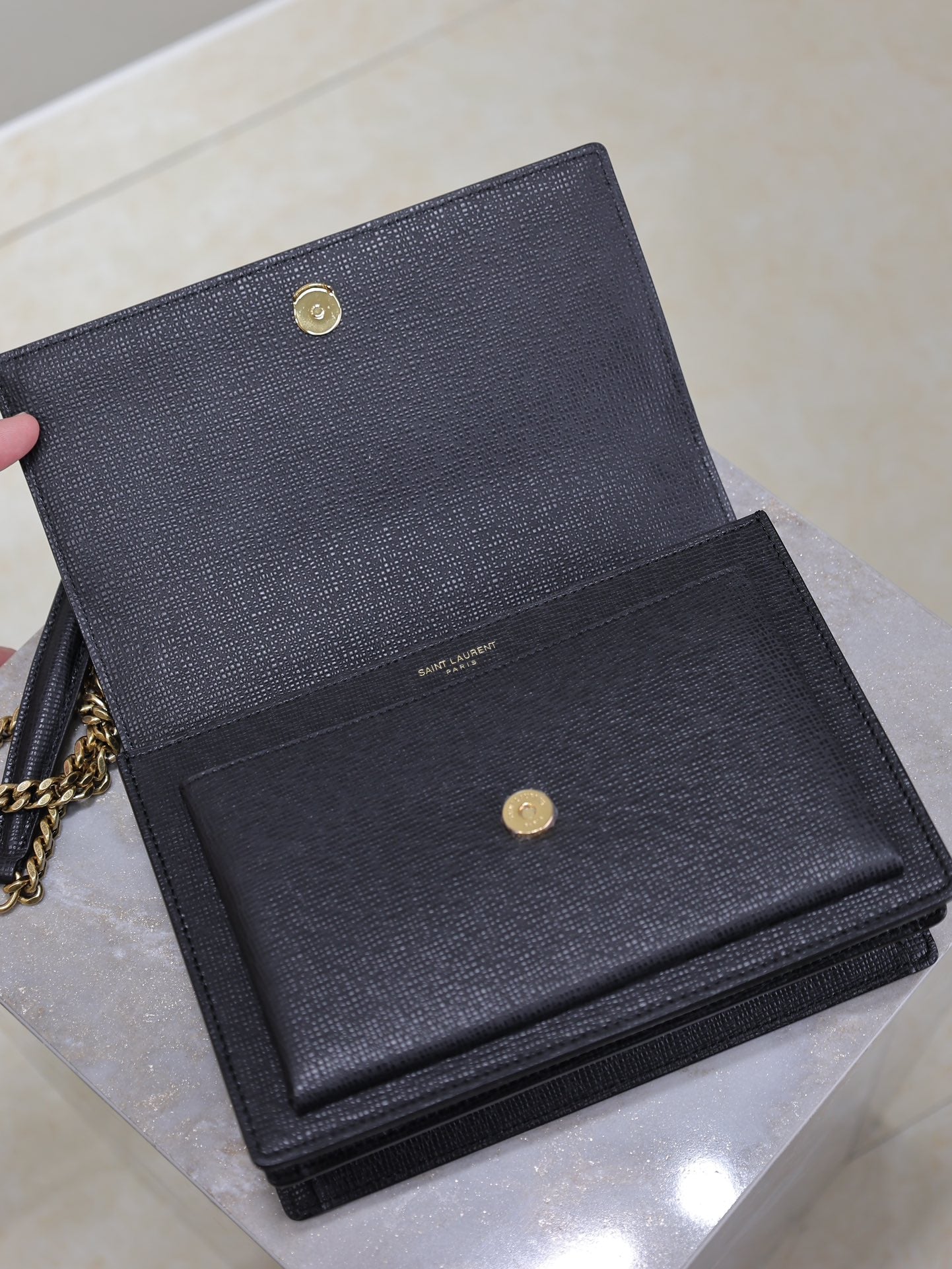 YSL 25S SUNSET MEDIUM 22 IN BLACK GRAINED CALFSKIN GOLD HARDWRE