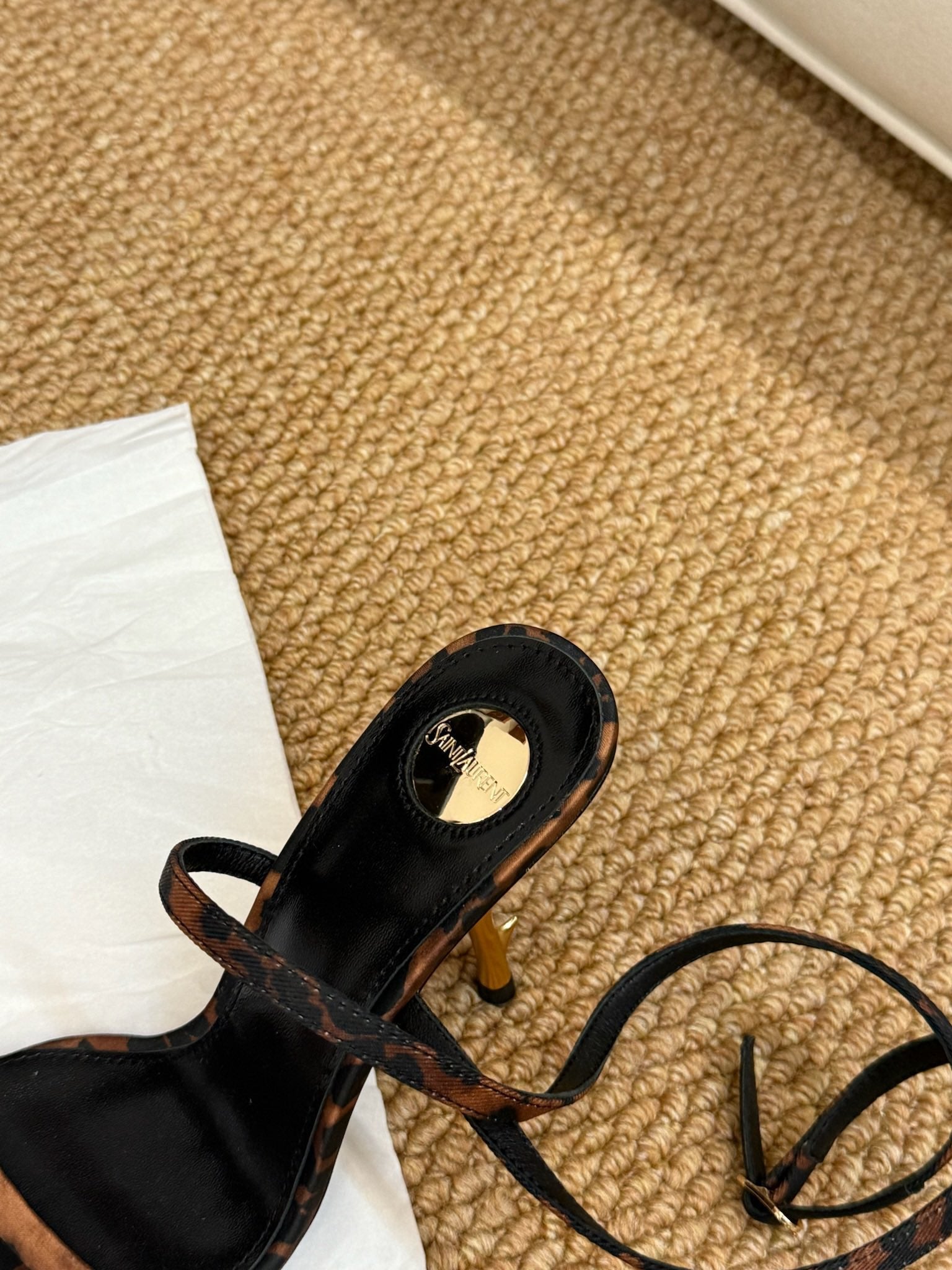 YSL HIGH HEEL SANDALS 25S IN LEOPARD PRINT LAMBSKIN