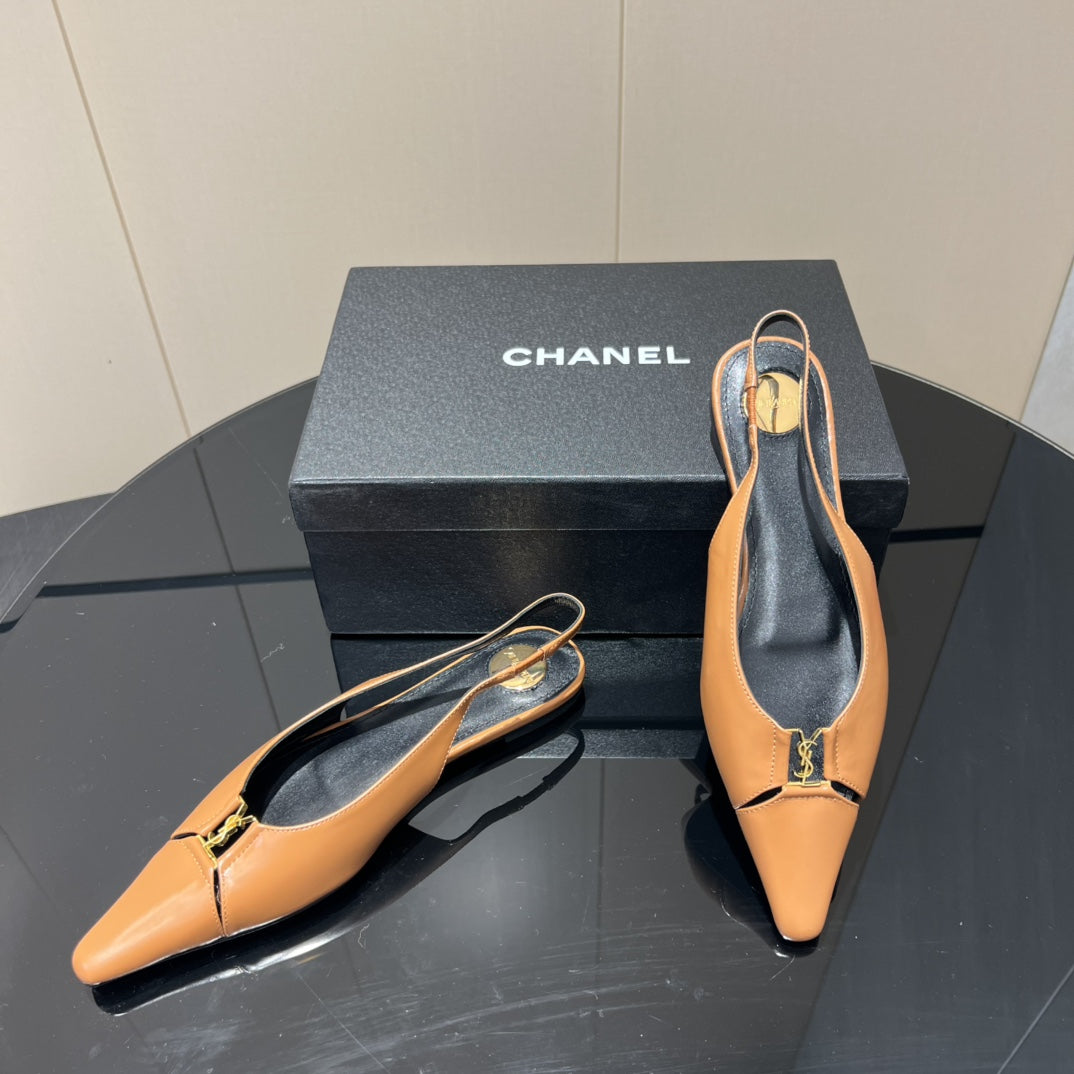 YSL SLINGBACK FLATS 25S IN MUTED ORANGE LAMBSKIN WITH GOLD HARDWARE