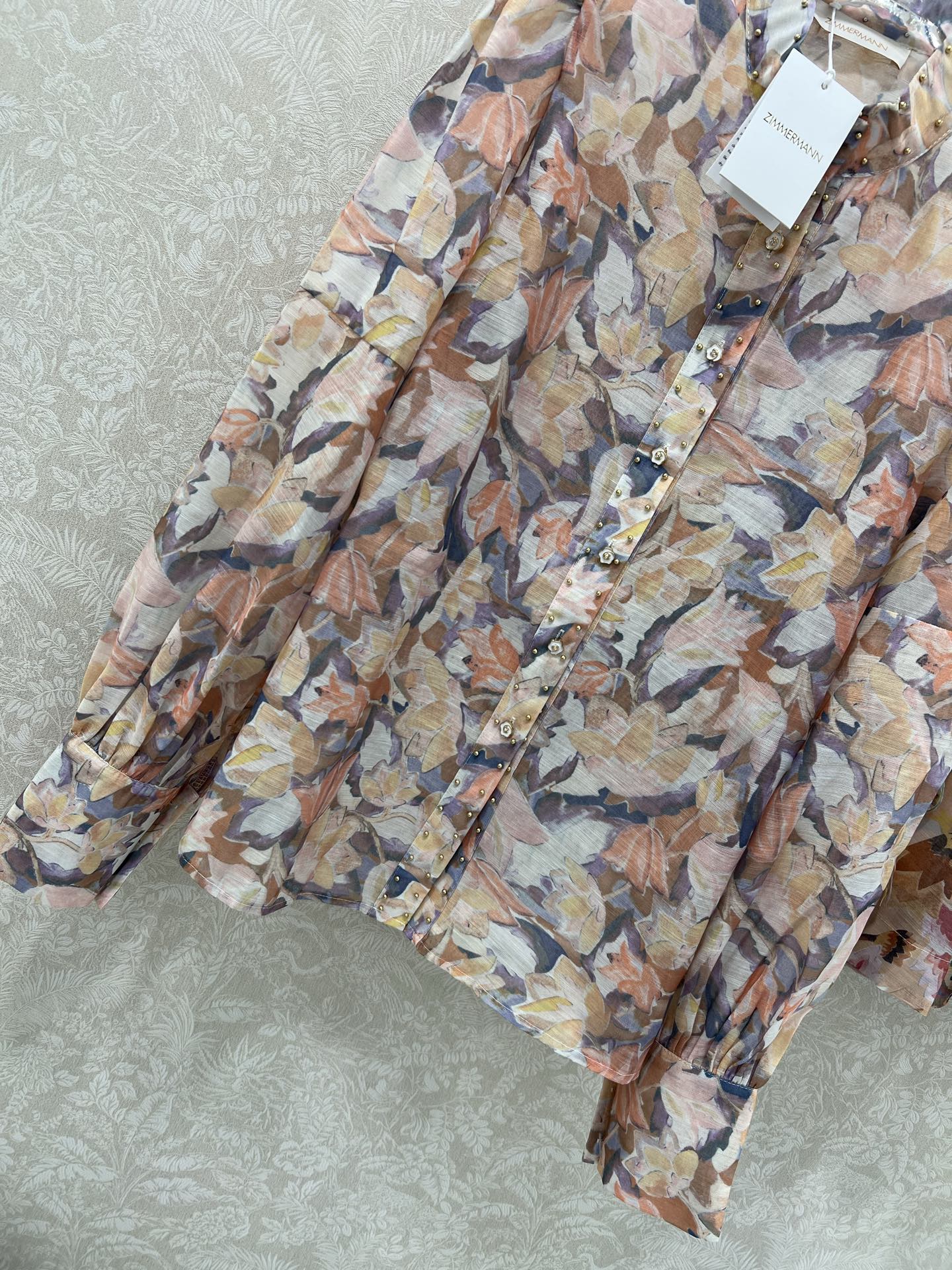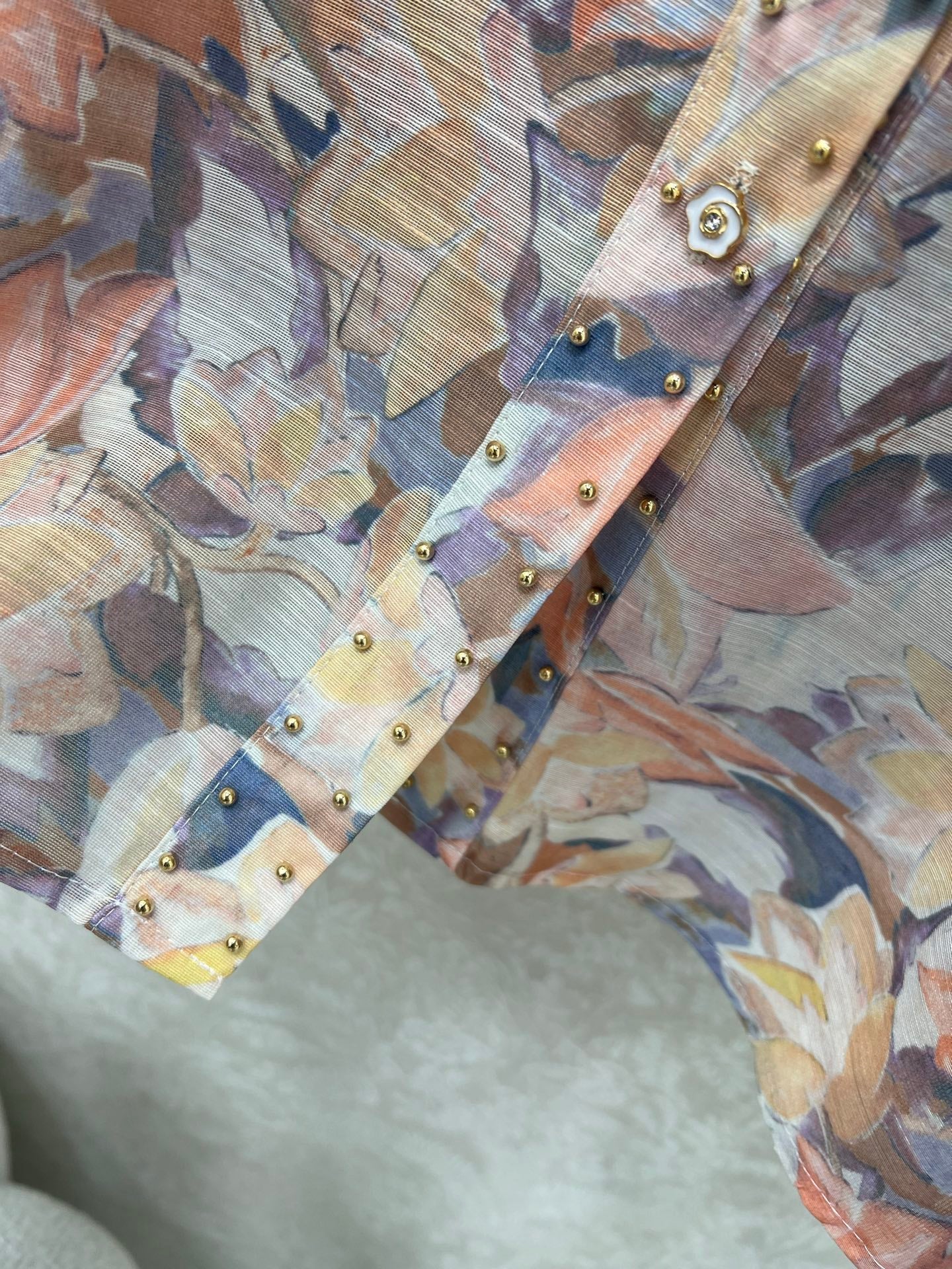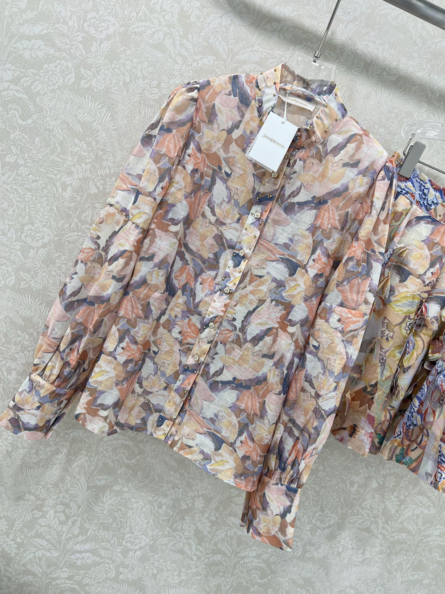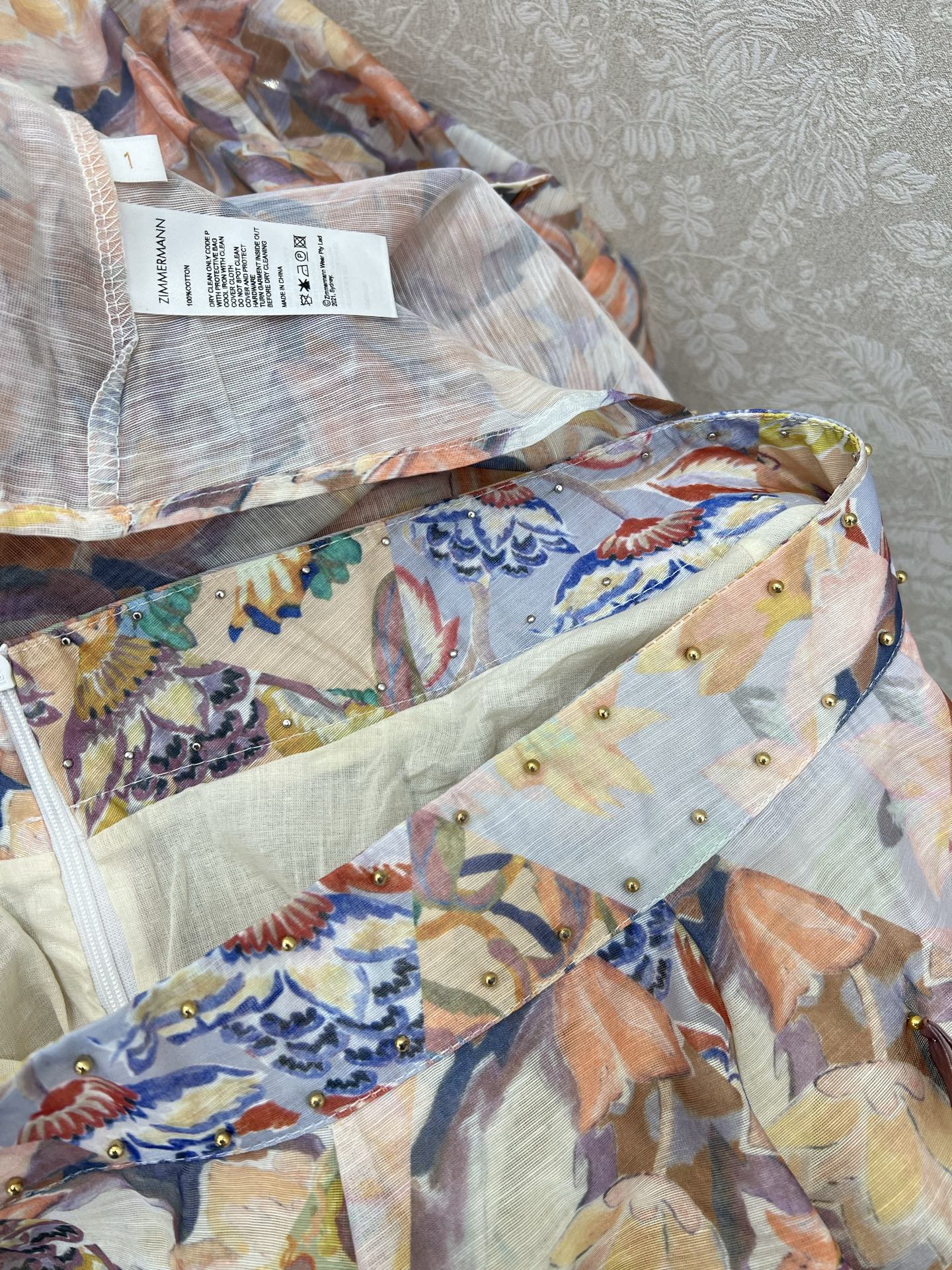 ZIMMER STAND-COLLAR PRINTED STUDDED TOP AND HIGH-WAIST FLARED SKIRT SET