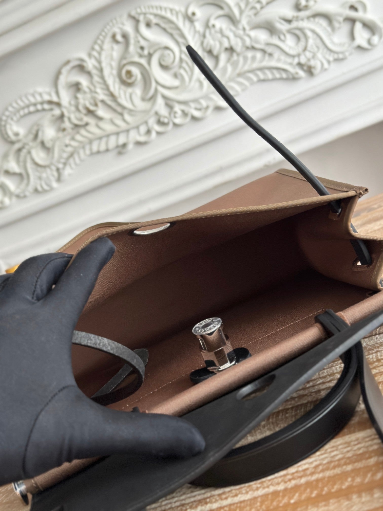 ZIP CABINE 31 BAG IN CHOCOLATE BROWN CANVAS AND BLACK CALFSKIN